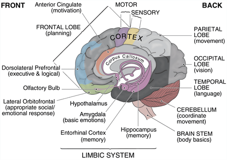 the right output. The prefrontal cortex (nasiya), which is the closest to the forehead, is the center for concentration, logic, creativity, inhibition, delayed gratification, planning, judgment, execution, and expression (Sapolsky, 2005; Allman, 2000).
